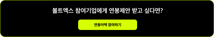 채용 외에도 신경쓰실 것이 많으실 채용담당자님들을 위해 boltX는 또 다른 선택지가 아닌 해결책을 드립니다. 결국 리크루터 분들이 다이렉트 소싱을 선택하는 이유는 효율성입니다. 효율성을 위한 선택이 또 다른 비효율이 되지 않도록 boltX는 효율성에 집중합니다. 압도적인 커피챗 매칭률부터 빅테크 출신과 풍부한 프로젝트 경험의 시니어들까지 채용담당자님들께서 오직 효율적인 채용에만 집중할 수 있도록 boltX가 압도적인 경험을 제공해드립니다.