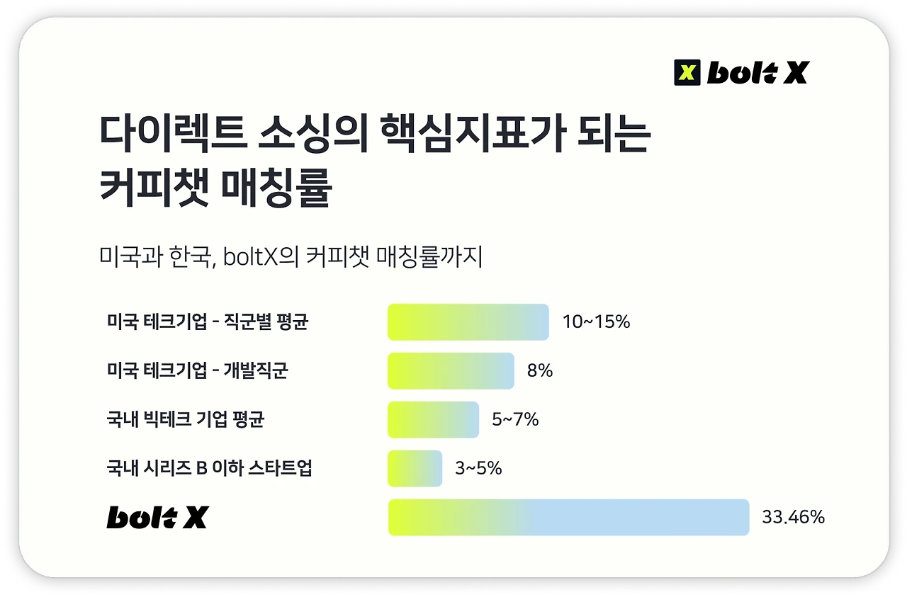 볼트X의 ‘커피챗 매칭률’ 33.46%. 기존 다이렉트 소싱 채널 대비 10배 수준!