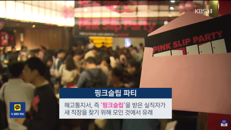 미국 불황 시기에 시작된 실직자들의 모임에서 유래된 핑크슬립파티. 이곳에 오신 분들은 모두 희망퇴직이나 정리해고로 회사를 떠나 있거나, 곧 떠나야 하는 예비 실업자였습니다.