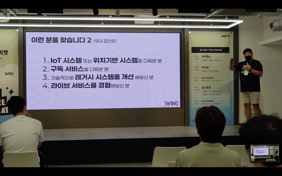 승균님은 현재 더 스윙에서 어떤 인재를 필요로 하는지 설명하며 세션을 마무리하셨어요. 개발 및 데이터 총괄이 알려주는 채용하고 싶은 사람이라니, 이건 정말 귀하지 않나요? 현장에서 나왔던 내용, 그대로 전달해드릴게요.