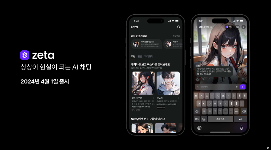 이전에 이루다를 만들며 쌓아온 LLM 기술력을 바탕으로 스캐터랩은 사용자가 자기가 직접 원하는 캐릭터를 만들거나, 혹은 다른 사람의 캐릭터를 끌어와 원하는 상황에서 원하는 캐릭터와 상호작용하는 서비스를 기획했습니다. 그것이 바로 제타이며, 현재는 4.1 버전이 출시된 상황입니다.