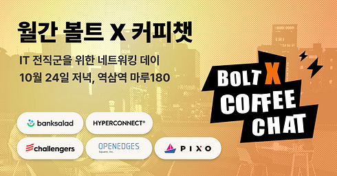 10월 볼트X 월간커피챗 참여 기업이었던 픽소 팀이 적어주신 월간커피챗 회고는 월간커피챗에 참여하는 기업들이 어떤 기대와 마음으로 이 행사에 참여하는지 고스란히 보여줍니다. 행사 3주 전부터 기업의 모든 구성원이 월간커피챗 준비를 위해 노력했다는 이야기를 읽으며 볼트엑스팀은 정말 감사함을 느꼈습니다. 행사에 진심으로 임해주는 기업들이 있기에 참여자 분들이 효용을 느낄 수 있고, 월간커피챗이 지속될 수 있다는 것을 다시 한 번 깨달았습니다.