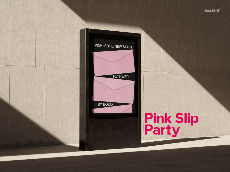 볼트엑스의 핑크 슬립 파티에서 구직자는 다시 커리어를 이어나갈 수 있는 기회를, 기업은 빅테크 기업의 유능한 인재를 채용할 기회를 갖게 될 것입니다. 무엇보다도, 혹독한 불경기에서도 우리는 연결을 통해 언제나 스스로 길을 찾을 수 있다는 귀중한 깨달음을 얻게 될 것입니다.