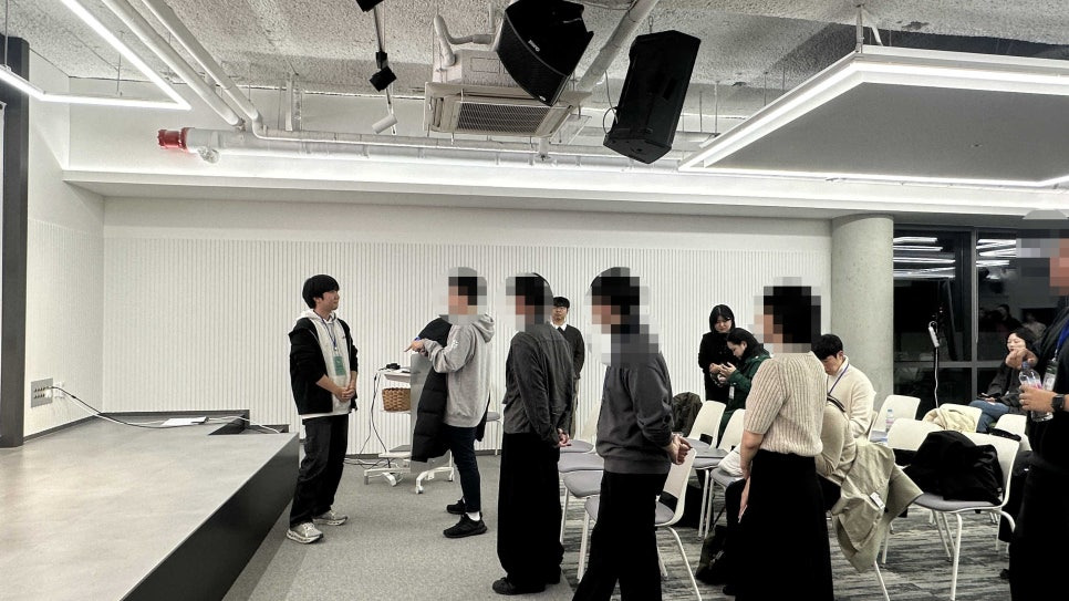 행사 시작하기 30분 전인데도 사람들이 행사장에 가득했답니다. 가장 뒤쪽에는 세션을 진행하시는 기업 관계자 분들이, 그 앞에는 참여자 분들이 앉았답니다. 몇몇 참여자 분들은 세션 시작 전에 옆 사람과 이야기를 나누며 서로의 커리어를 공유하고, 기업 실무진과 이야기를 나누며 미리 궁금한 점들을 공유하면서 소통하기도 했답니다.