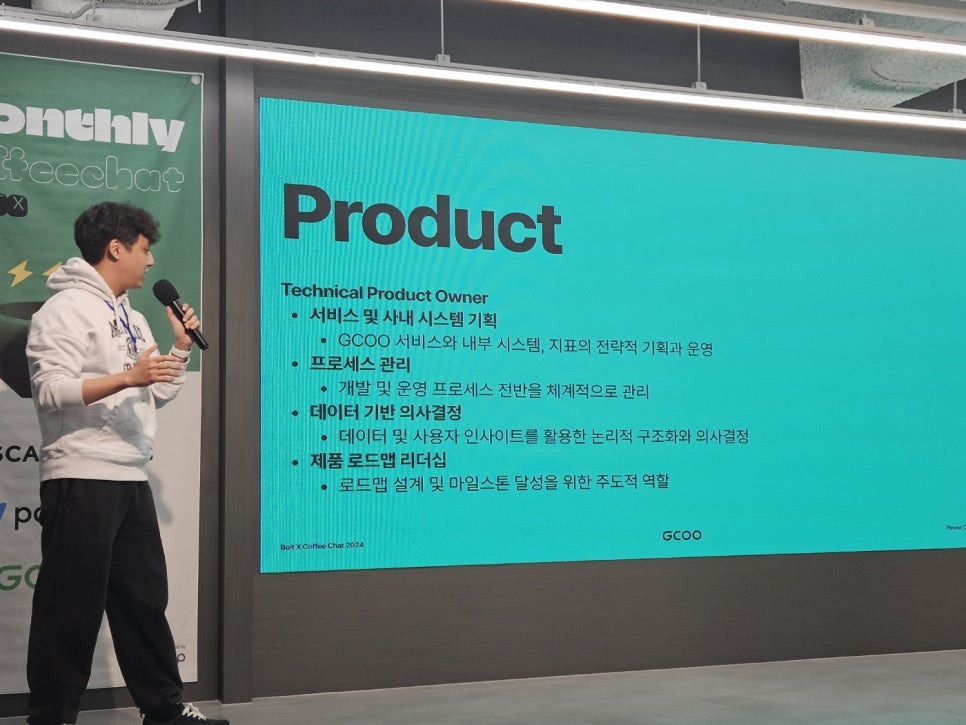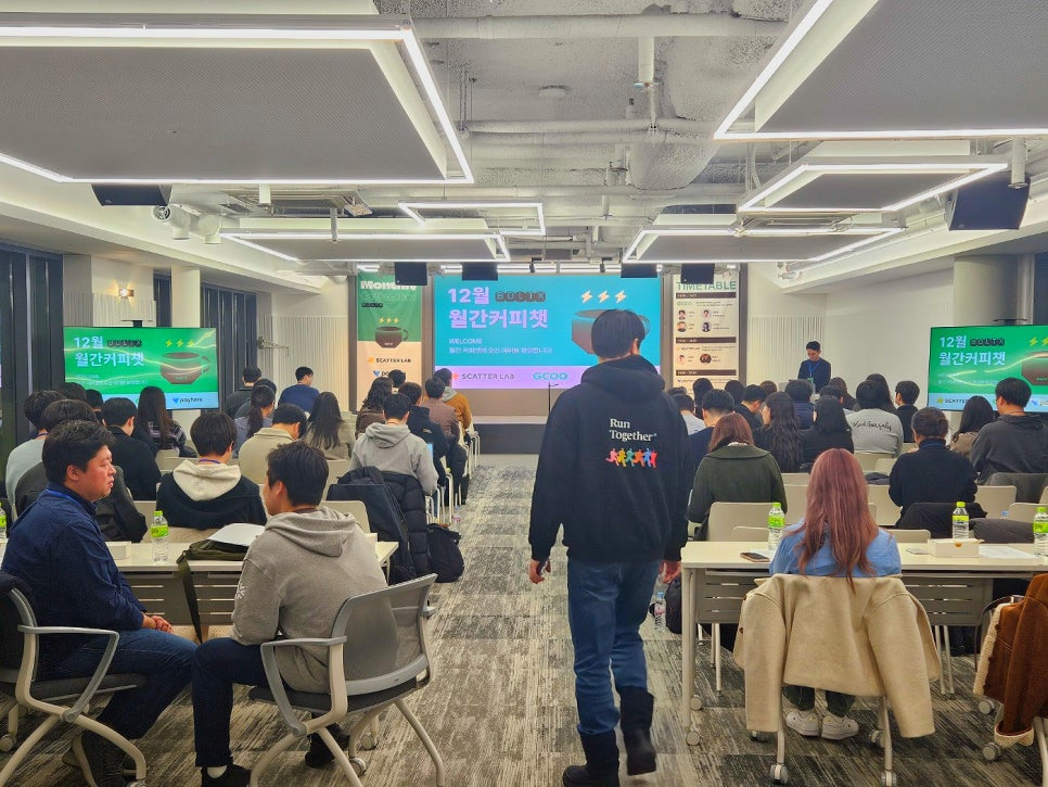 항상 그러했듯 이번 12월 월간커피챗에도 각 분야를 선도하는 최고의 기업들이 참여했습니다. 한국 퍼스널 모빌리티 1위 기업 지쿠, AI 엔터테인먼트라는 새로운 분야를 개척하고 있는 스캐터랩, 매장 경험을 혁신하는 POS 분야의 최강자 페이히어가 행사를 찾아주셨답니다. 각 기업은 '이건 회사 기밀이 아닐까?'라는 생각이 들 정도로 상세하게 기업의 기술적 자산을 공유해주셨고, 이에 화답하듯 참여자 분들도 정말 수준 높은 질문들을 실무진 분들께 던져주셨답니다.