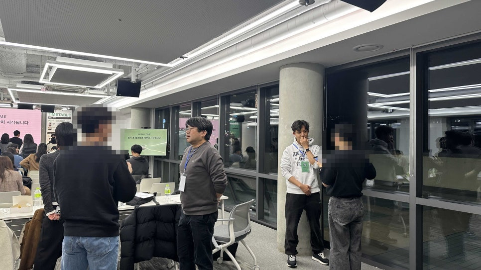 월간커피챗의 본질이 '네트워킹'이니 만큼 기업 세션 사이사이에 리크루터, 실무진과 자유로이 네트워킹을 할 수 있는 시간이 제공됩니다. 월간커피챗 참여자 중 많은 분들이 네트워킹 시간을 활용하여 커리어의 가능성을 넓히고자 노력합니다. 세션이 끝나기가 무섭게 네트워킹을 위해 기업 관계자 앞에는 줄이 만들어지고, 쉬는 시간 내내 기업 관계자들은 참여자 분들과 대화를 하느라 바쁘답니다.