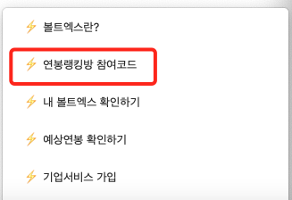 ➡️ 열리는 카카오톡 채팅방에서 하단에 올라오는 리스트 중 '연봉랭킹방 참여코드' 클릭