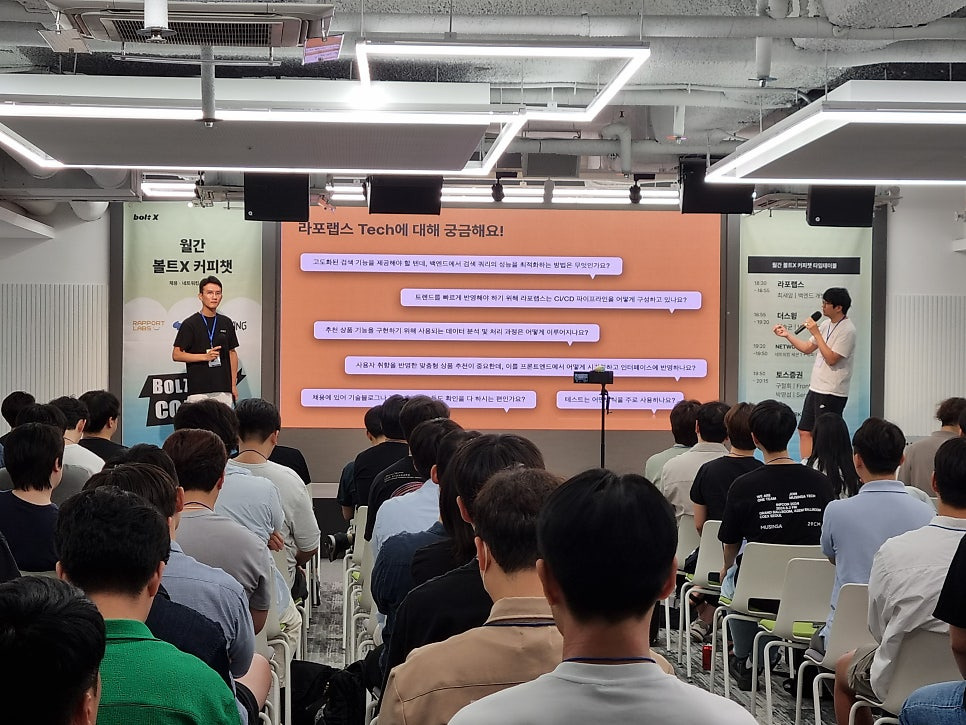 이외에도 라포랩스의 가치, 핵심 기능을 구현하는 기술, 주로 사용하는 툴 등 가치부터 기술 영역까지 폭넓은 분야에 관한 좋은 질문들에 대해 질문과 답변이 오갔답니다 :)